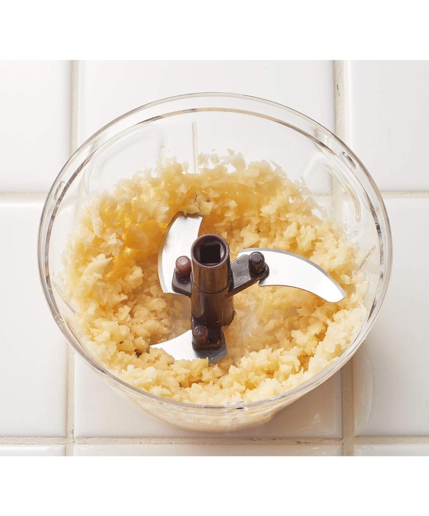 ●Два «навесных приспособления», которые можно выбирать в зависимости от цели, очень полезны! Измельчитель с тремя лезвиями позволяет измельчать ингредиенты до желаемой степени крупности.. Блендер можно использовать для взбивания и смешивания.