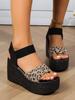 Летние женские модные босоножки на танкетке с пряжкой на ремешке и высоким каблуком, повседневная мода, леопардовые большие римские женские сандалии Zapatillas