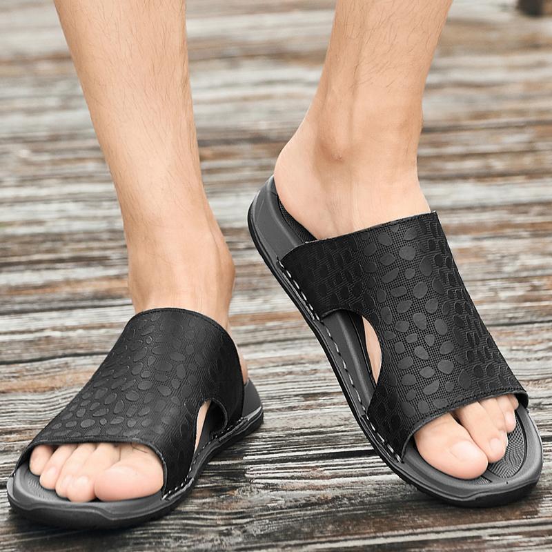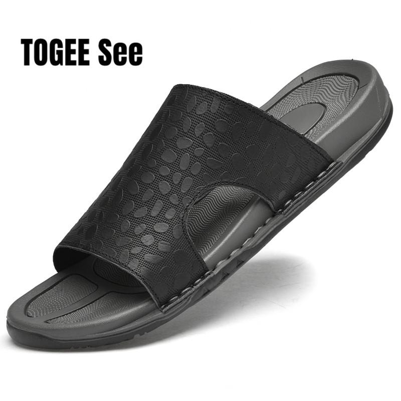 Летние мужские тапочки для улицы, повседневная обувь из натуральной кожи для мужчин, сандалии, классические нескользящие пляжные тапочки, домашние тапочки для ванной
