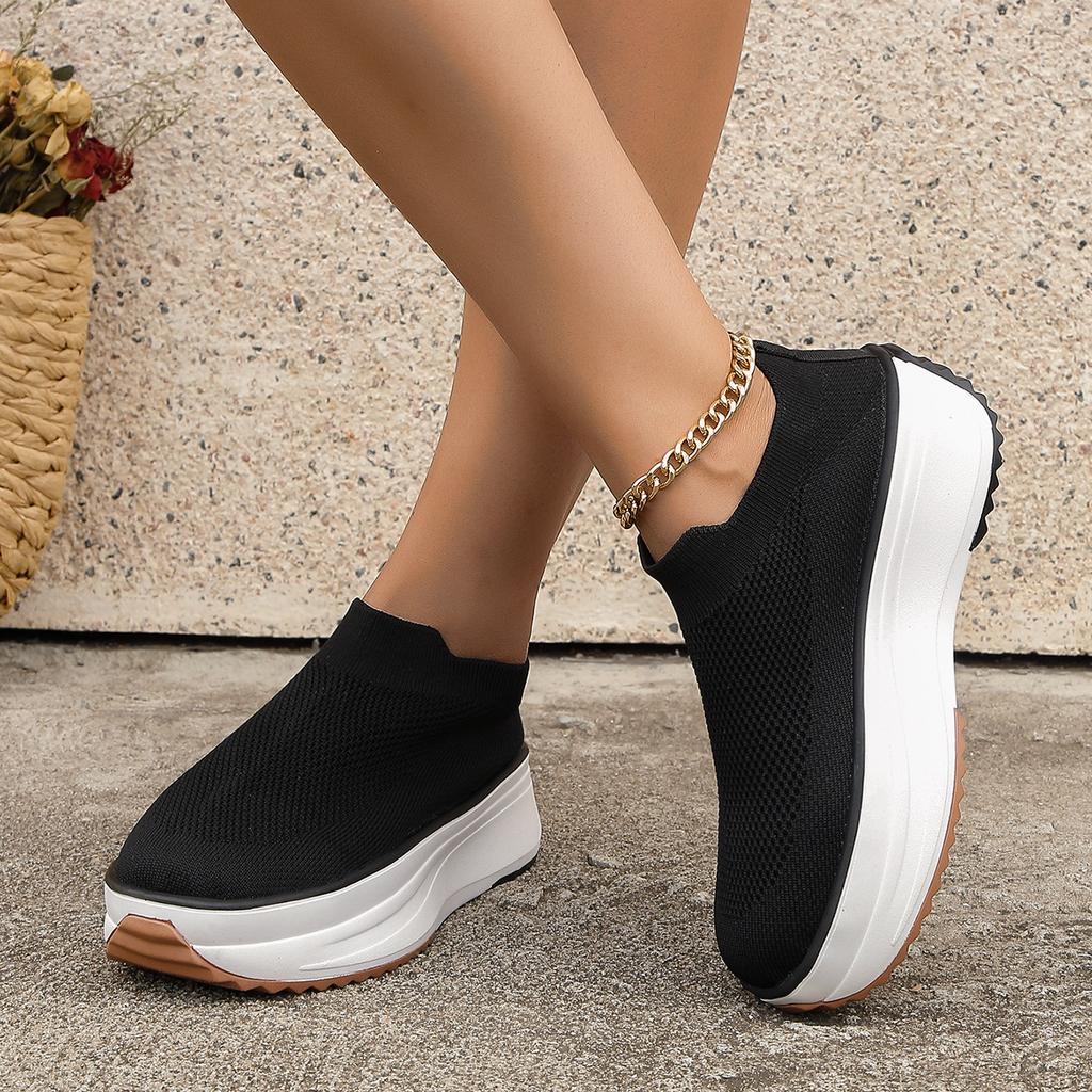 2024 Осенние дизайнерские туфли с круглым носком и толстой подошвой, большие размеры 35-43, женские ботинки из эластичной ткани, спортивные туфли с низким верхом для женщин — купить товар онлайн с бесплатной доставкой до всему миру!