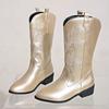 Женские модные рыцарские сапоги без застежек, женские осенне-зимние рыцарские сапоги на толстой подошве, с острым носком, квадратным каблуком, вышитые ковбойские сапоги