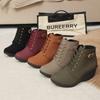 Ботильоны на танкетке в стиле ретро с толстым дном и круглым носком на высоком каблуке, короткие, со шнуровкой, на осень-зиму, теплые, на платформе, в этническом стиле, 2025