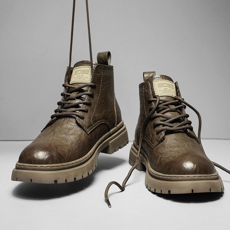 2024 Новые мужские кожаные ботинки Рабочие ботинки с толстой подошвой Ботинки для походов на открытом воздухе Красивые мотоциклетные ботинки Мужские повседневные короткие ботинки