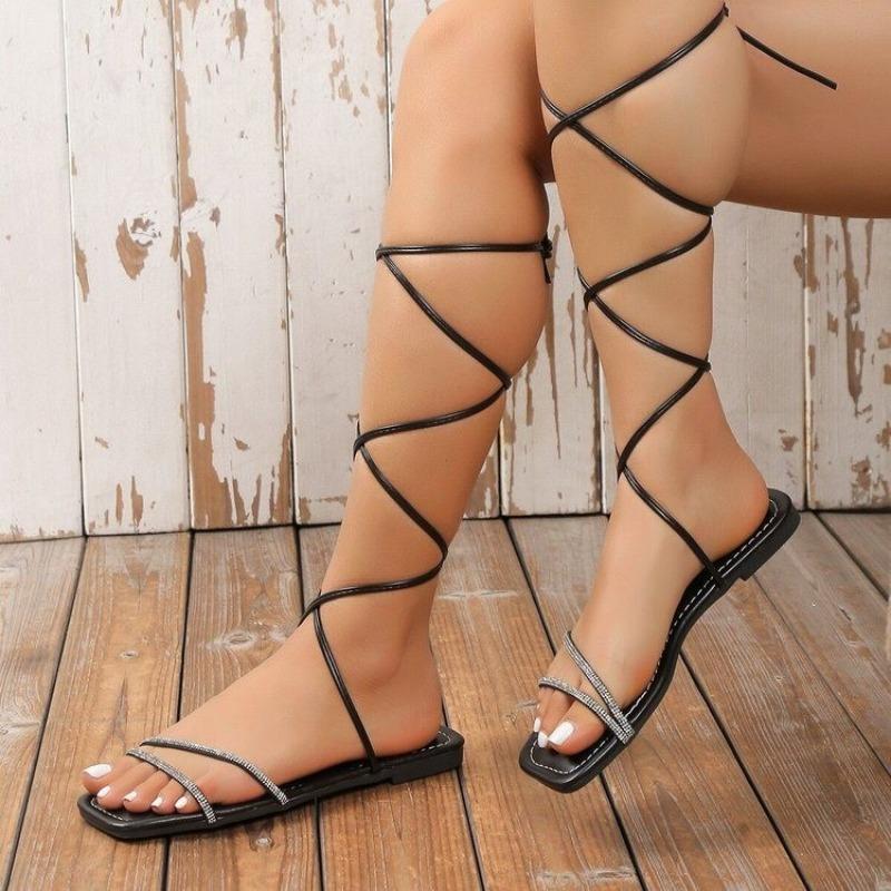 Сандалии женские летние 2024 года, новые модные туфли на плоской подошве с открытым носком и перекрестными шнурками, повседневные элегантные пляжные гладиаторские сандалии на шнуровке Zapatos — купить товар онлайн с бесплатной доставкой до всему миру!