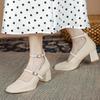 Модная женская обувь в стиле Мэри Джейн, женская обувь на низком каблуке с неглубокой горловиной и квадратной головкой, однотонная женская обувь для вечеринки 2024 года, весна-осень