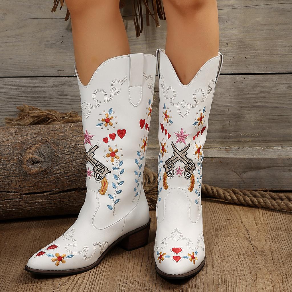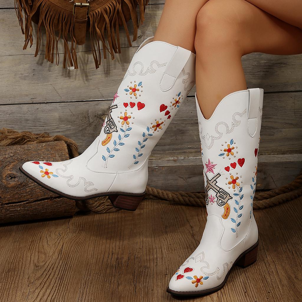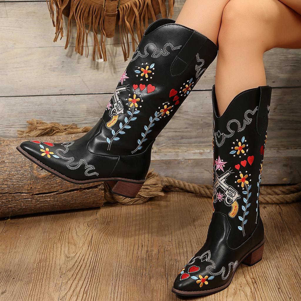 Женские сапоги больших размеров, модные, вышитые, винтажные, ковбойские, высокие сапоги до колена, женские, осенне-зимние, повседневные, теплые, для женщин