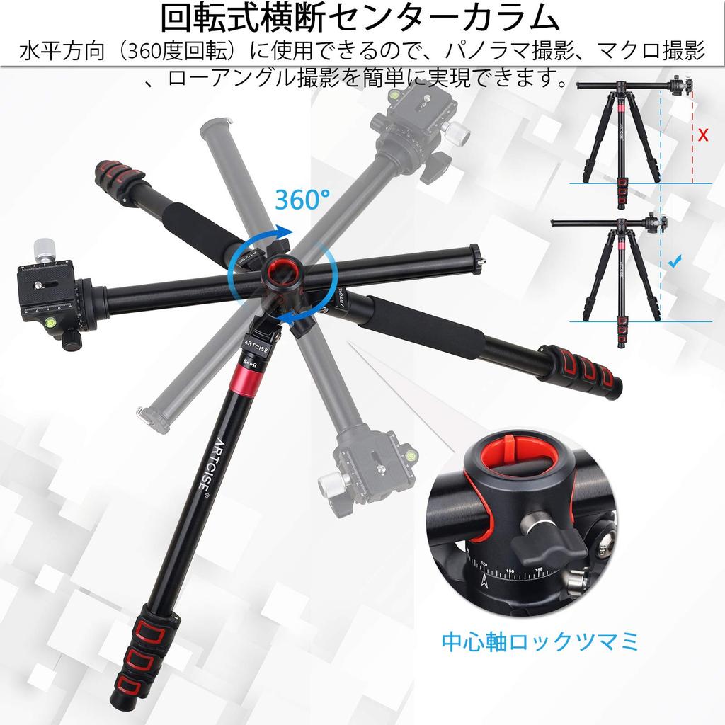 【Вращение и переворот】По сравнению с традиционными штативами этот штатив для камеры может наклонять центральную ось на 90 градусов по вертикали или вращаться на 360 градусов по горизонтали.. Легко делать снимки с высоты птичьего полета и панорамные снимки. Кроме того, удалив ось и перевернув ее, можно добиться съемки с низких ракурсов, макросъемки и других ракурсов.. Вы можете легко делать панорамные фотографии, макросъемку и фотосъемку с низкого ракурса.
