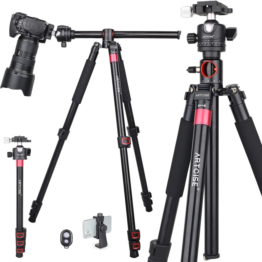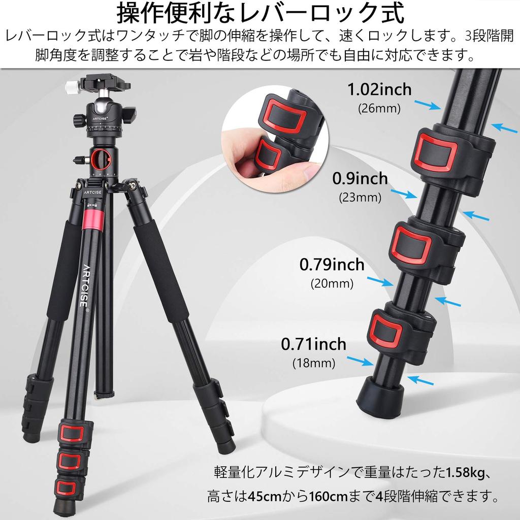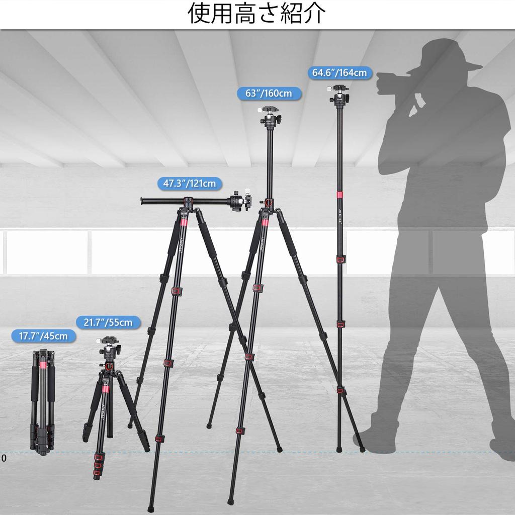 🔴 [Алюминиевый штатив для камеры с широким спектром применения] Регулируя угол наклона ножек в 3 положениях, вы можете свободно использовать его в таких местах, как скалы и лестницы.. Нескользящая конструкция ножек обеспечивает безопасность и устойчивость вашей цифровой зеркальной камеры.. Подходит для различных типов фотографий, таких как звездное небо, ночные виды, фейерверки, спортивные мероприятия, пейзажи, поезда и видеосъемка.. Оснащен профессиональной вращающейся на 360 градусов шаровой головкой с низким центром тяжести для обеспечения панорамной съемки. Центр тяжести примерно на 15% ниже, чем у обычной шаровой головки, что обеспечивает хорошую устойчивость и высокую силу фиксации.. QR-пластина с резьбой 1/4 дюйма совместима с видеокамерами Canon, Nikon, Olympus, Pentax, Panasonic, FUJIFILM, Kodak и другими.