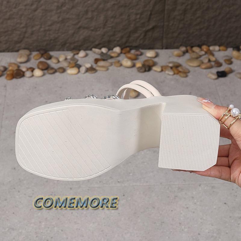 Женские летние сандалии на массивном каблуке, модные шлепанцы с кристальными ремешками на высоком каблуке, женские больших размеров, слипоны на платформе, сандалии женские