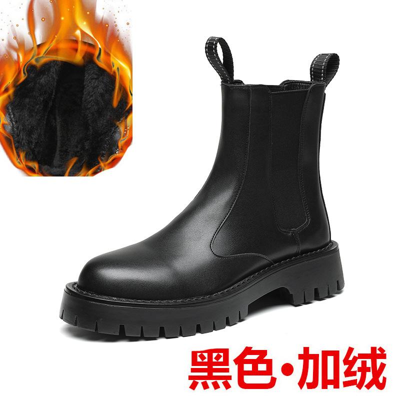 Мужские черные ботинки в стиле «Челси» Зимние высокие кожаные ботинки с флисом для мотоциклистов, ботинки buty do kostki C1175