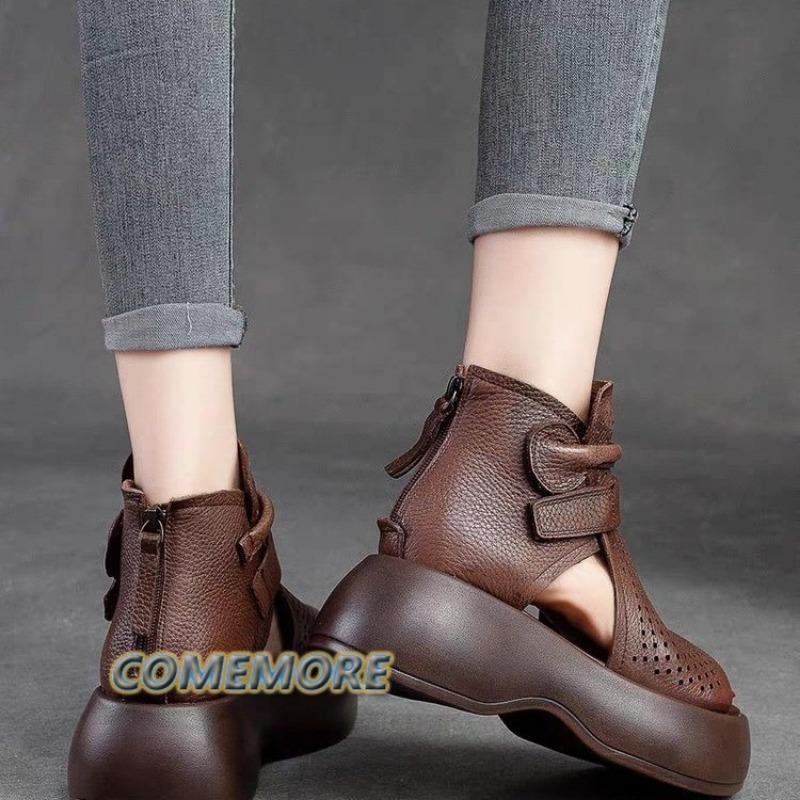2024 Новые Ретро Мягкие PU Кожаные Женские Крутые Ботинки Модные Женские Сандалии Летние Сандалии Fish Mouth На Танкетке Среднего Каблука Сандалии