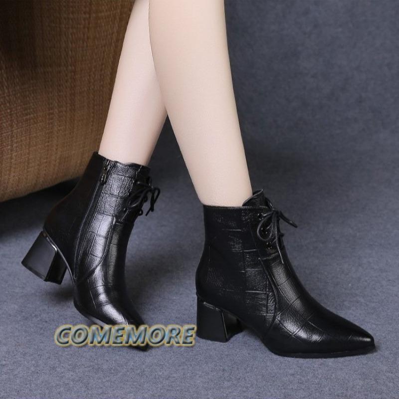 Осень-зима, новые короткие остроносые ботинки 35-42, кожаные, с застежкой-молнией, элегантные, на среднем каблуке, модные ботильоны, повседневная женская обувь 2024 г. — купить товар онлайн с бесплатной доставкой до всему миру!