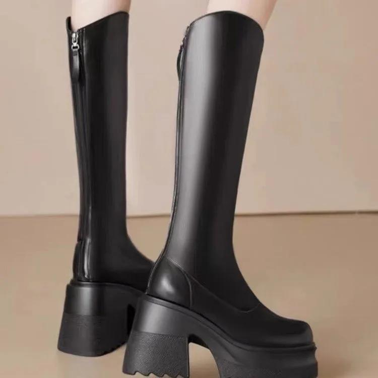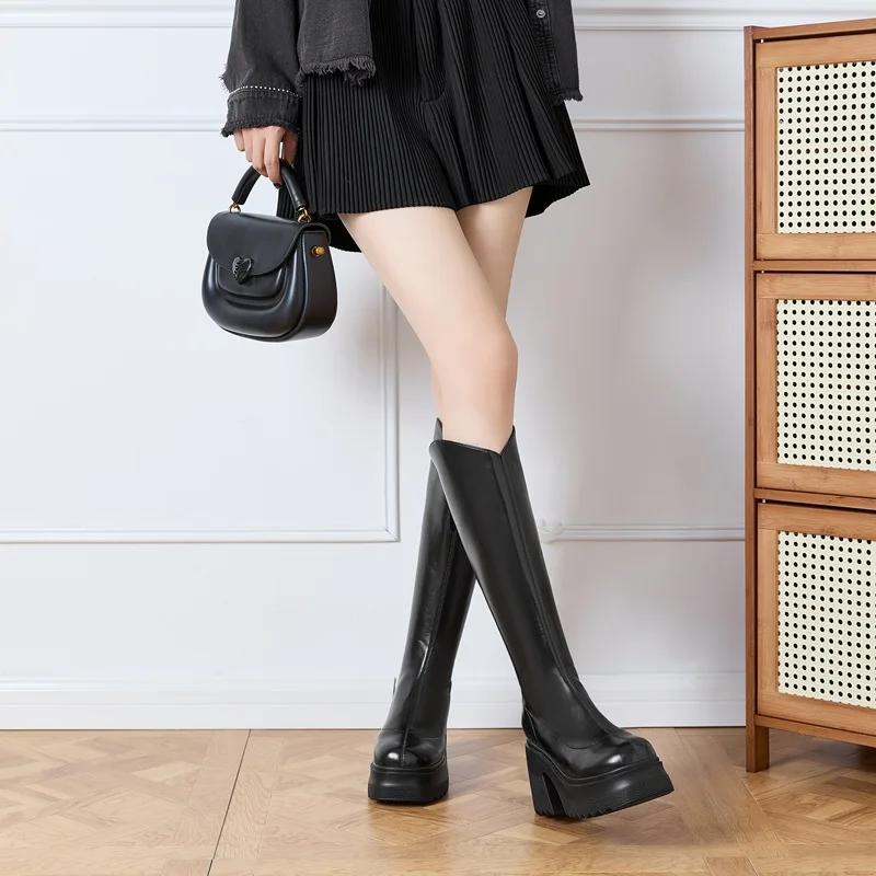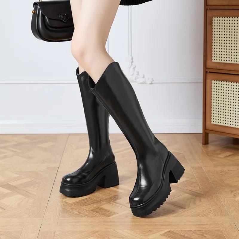 2024 Модные женские сапоги из мягкой кожи, высокие сапоги до колена, женские туфли на молнии с квадратным каблуком, осенне-зимние рыцарские сапоги