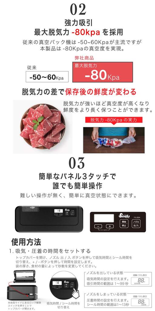 Обычные вакуумные упаковочные машины обычно имеют уровень вакуума от -50 до 60 кПа, но данное изделие достигает уровня вакуума -80 кПа.