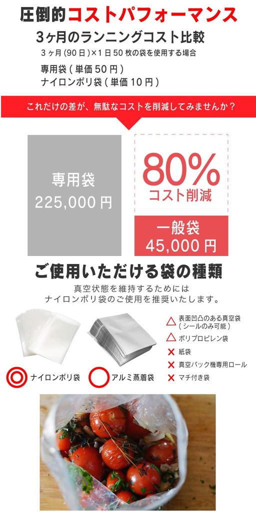 Нет необходимости использовать дорогие специализированные пакеты, и вы можете изготавливать вакуумные упаковки недорого, используя имеющиеся в продаже нейлоновые пластиковые пакеты, не беспокоясь о расходах.