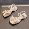 Большие однотонные сандалии с жемчугом для женщин 2024 года, летние новые однотонные пряжки, модные темпераментные банты, удобные женские туфли