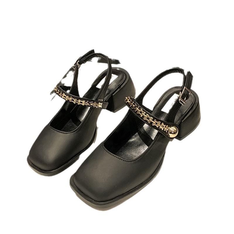 Французские черные босоножки на высоком каблуке с бантиком, женская обувь, весна-лето 2024 г., туфли Мэри Джейн на толстом каблуке, ужин, одинарные туфли