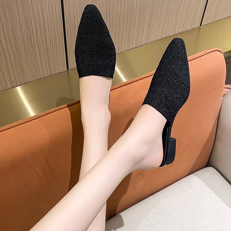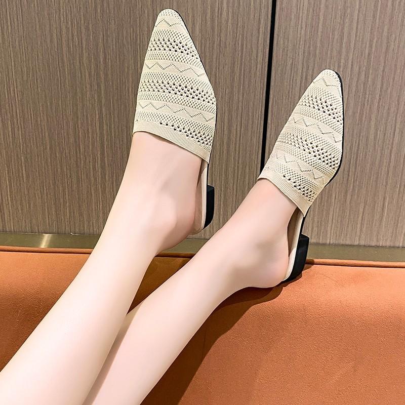Летние женские желтые черные трикотажные шлепанцы мюли новые элегантные сетчатые дышащие тапочки на среднем каблуке с закрытым носком шлепанцы для вечеринок