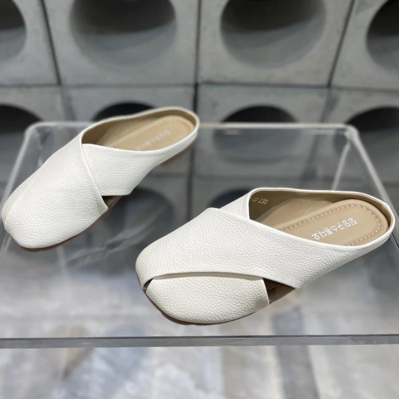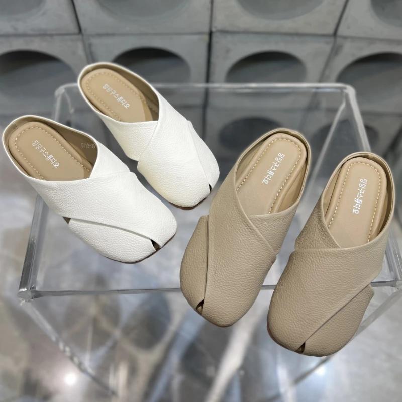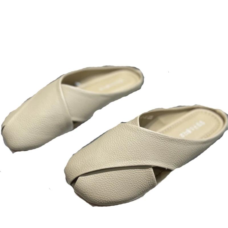 Тапочки из натуральной кожи на плоской подошве, женская одежда, мягкая подошва, удобная, универсальная женская обувь, модные тапочки Pantuflas De Mujer