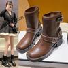 Осень-зима, новые женские модные элегантные короткие сапоги с пряжкой на ремне в стиле панк, коричневые, квадратные, 5 см, очень повседневные женские туфли
