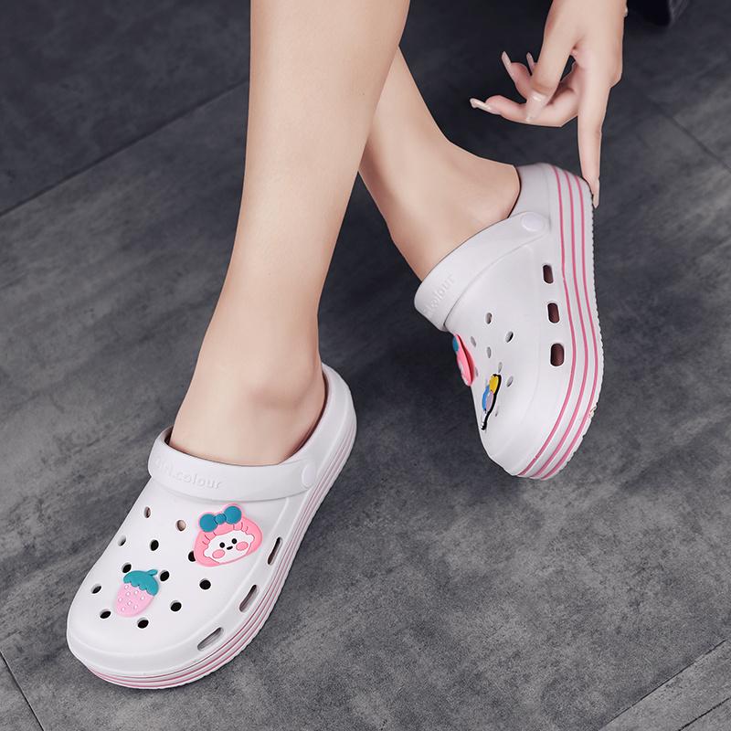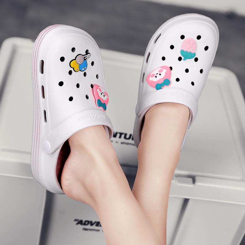 Новые милые белые сандалии женские плоские модные летние сабо женские сандалии на платформе нескользящие садовые сандалии женские 2024 без застежек