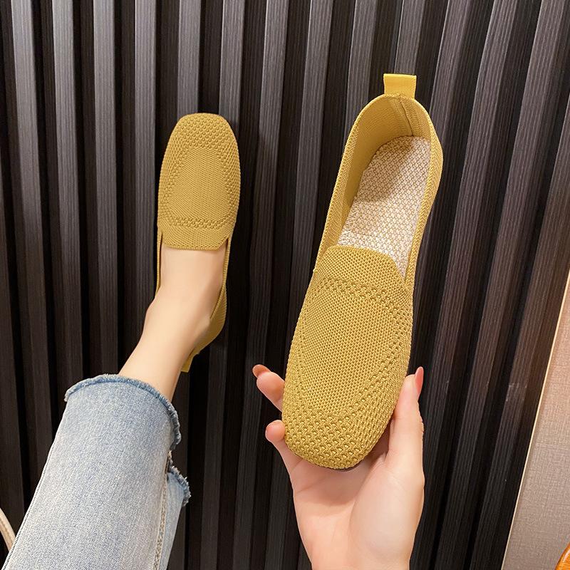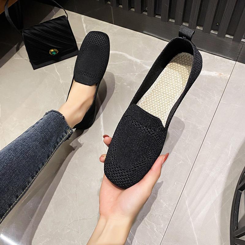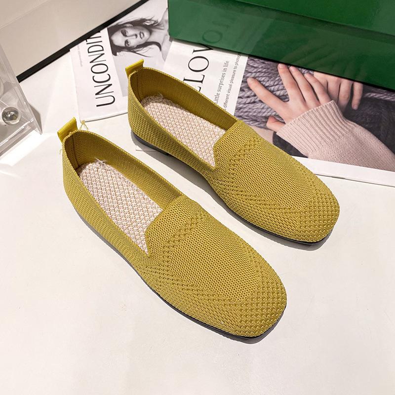 2024 однотонные сетчатые лоферы с квадратным носком, женская обувь на плоской подошве, вязаные балетки на мягкой подошве, повседневные топсайдеры без шнуровки