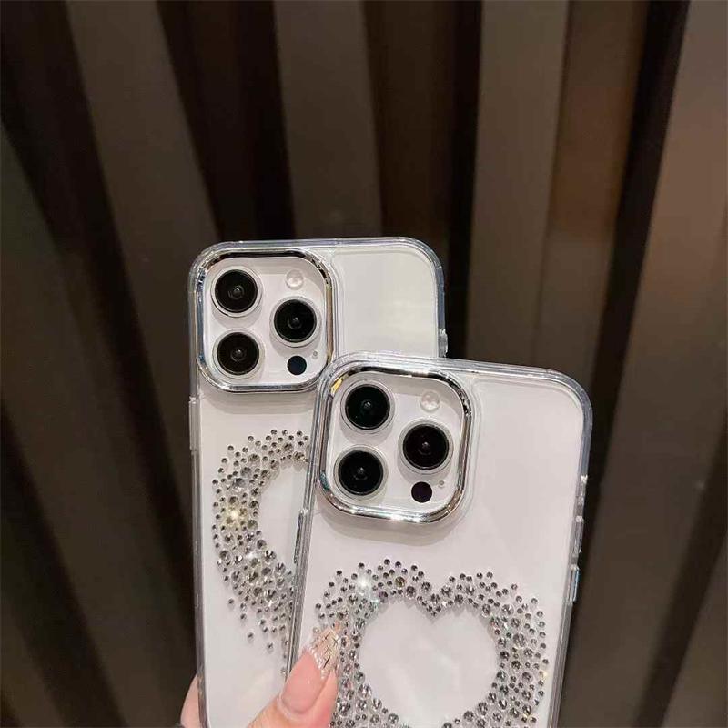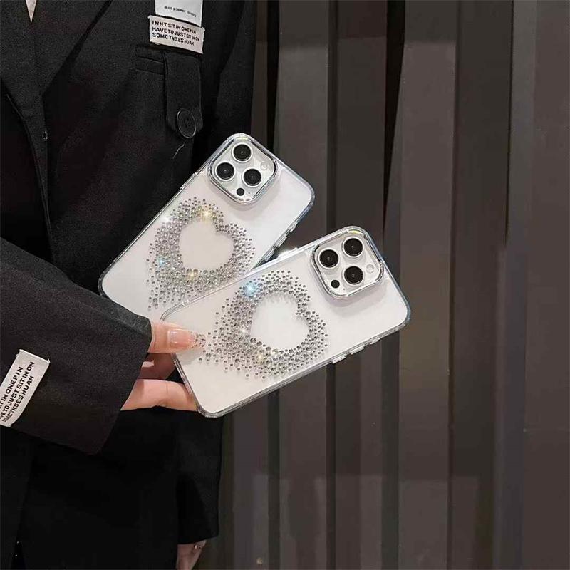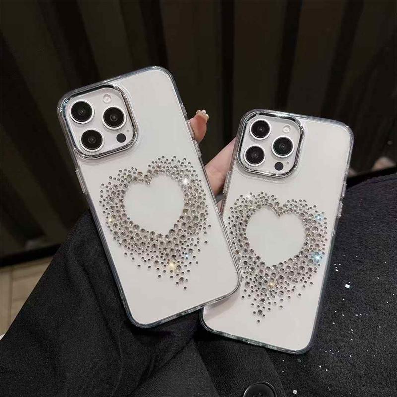 Роскошный чехол с бриллиантами и сердечками для iPhone 16 15 14 13 12 Pro Max, прозрачный, ударопрочный, с блестками