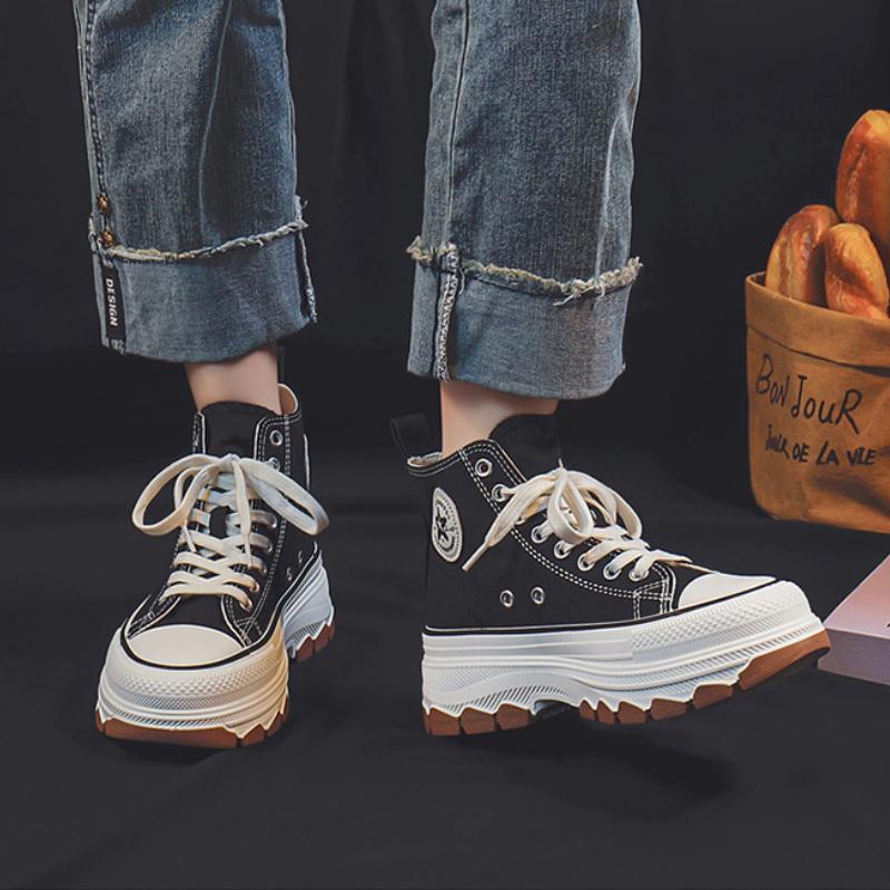 Повседневная женская обувь в стиле ретро 2024 года, новая толстая подошва, универсальная, повышенный комфорт, высокие парусиновые туфли на платформе Zapatos De Mujer — купить товар онлайн с бесплатной доставкой по всему миру!