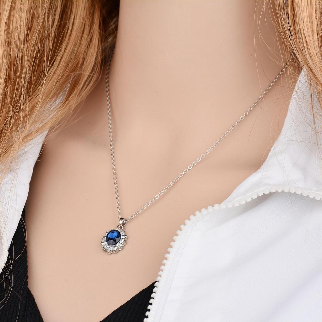 Модные комплекты ювелирных изделий для женщин, комплект из ожерелья и серег с подвеской в виде цветка синего цвета AVE