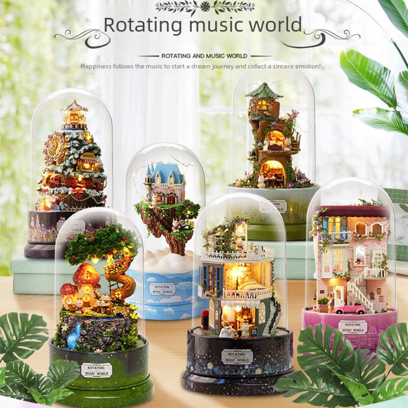 Zhiquwu DIY вращающаяся музыкальная мировая модель хижины - творческая сборка игрушки
