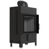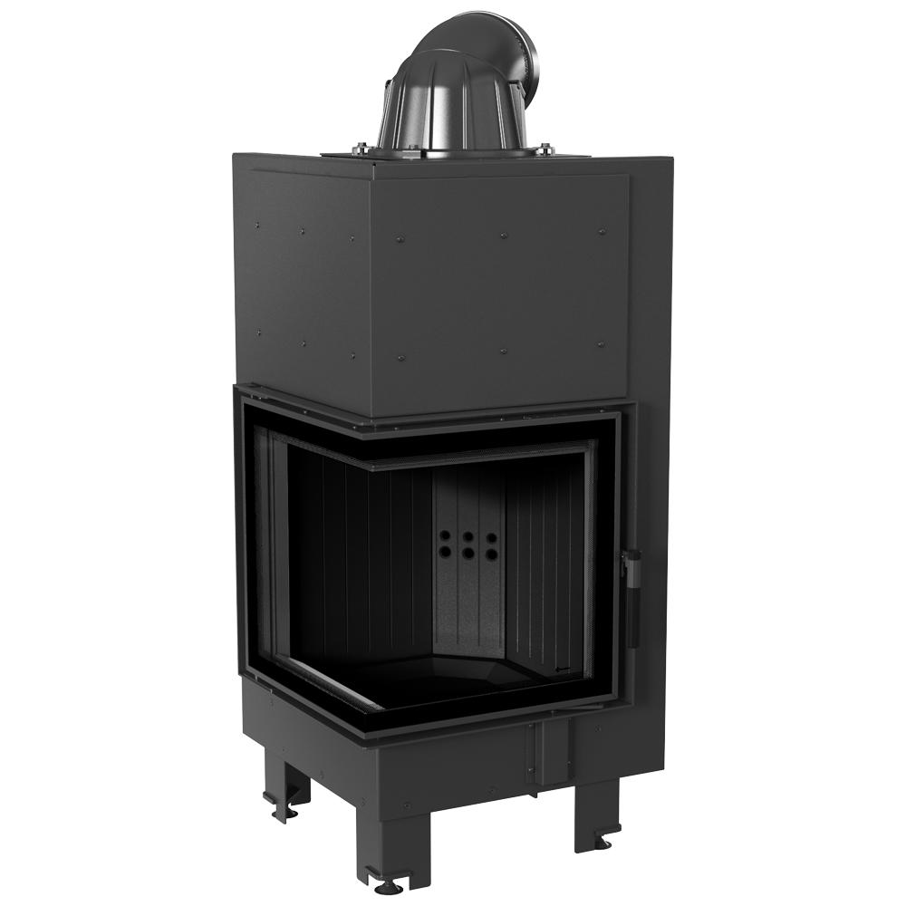 In addition, the clean glass system (air curtain) is used in the inset, i.e. the air is supplied directly to the glass through a system of ducts located on the sides of the fireplace. In this way oxygen is supplied to the upper part of the combustion chamber where the gases produced during wood combustion are afterburnt, which additionally limits the emission of harmful CO into the atmosphere.