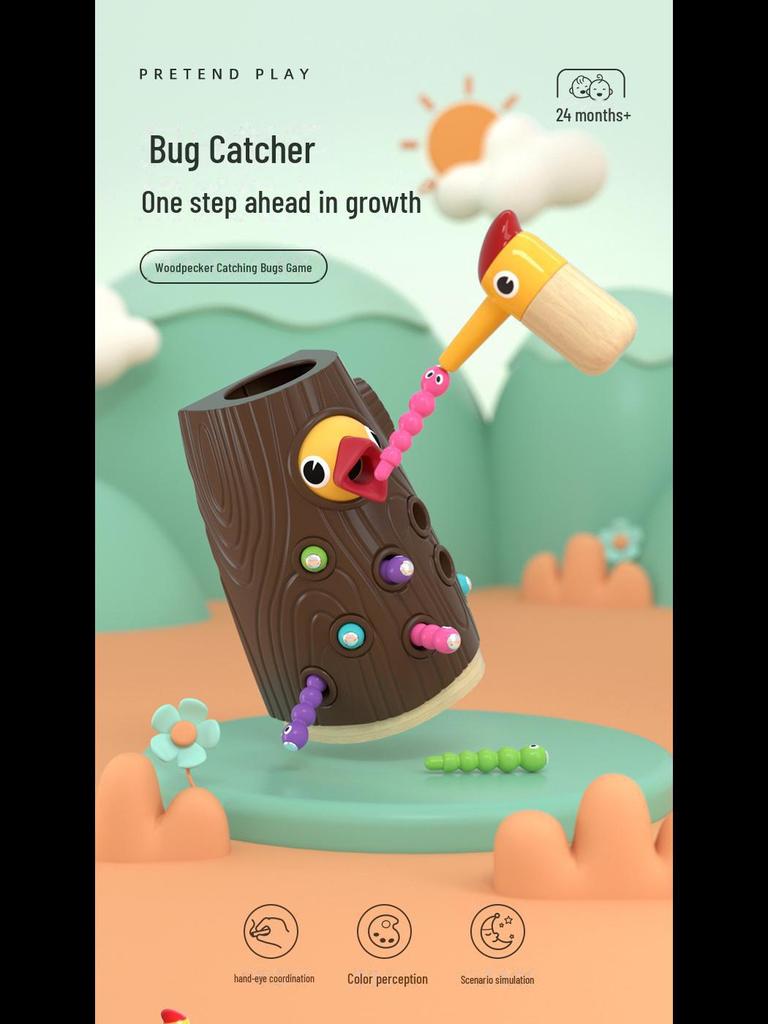Монтессори Деревянный Дятел Насекомое Игра Обучающая Игрушка для Развития в Раннем Детстве