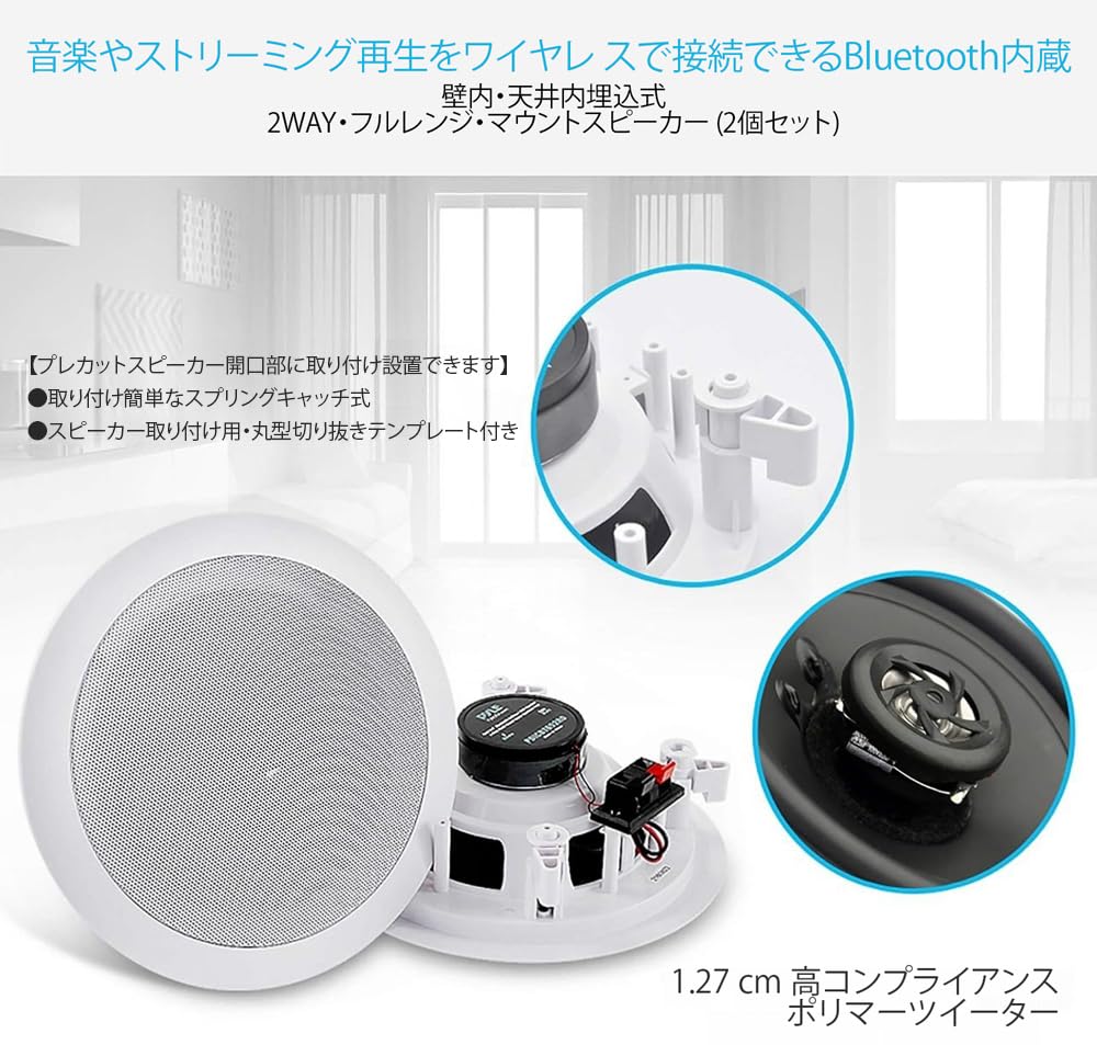 : ● В комплект входит беспроводной приемник аудиосигнала Bluetooth. ● Совместим со всеми новейшими устройствами. (смартфоны, планшеты, ноутбуки, компьютеры и т. д.) ● Имя сети Bluetooth Pyle' ● Пароль сети Bluetooth: '0000' (4 нуля) ● Версия Bluetooth: 4.0 ● Беспроводной диапазон: 9,1 м [Технические характеристики] Максимальная производительность: Номинальная мощность 250 Вт: 125 Вт Сопротивление: Чувствительность 8 Ом: 89 дБ Частотная характеристика: 50Гц-20кГц Источник питания: 100/240В (Источник питания 12 В постоянного тока) [Размер динамика]: ▪︎ Общий размер динамика: приблизительно. 27,2 см x 8,9 см, ▪︎ Диаметр выреза: 23,6 см, ▪︎ Глубина в установленном состоянии: 7.6 см ●Вес: 2кг (каждый)