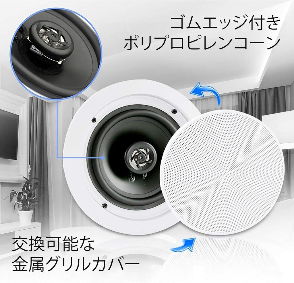 🟦[Содержимое коробки]: ●20см (8 дюймов) Встраиваемый в стену/потолок 2-полосный полнодиапазонный динамик со встроенной функцией Bluetooth, комплект из 2 предметов ● Адаптер питания ● Приемник управления Bluetooth ● Круглый шаблон для вырезания