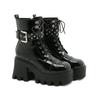 Лакированные готические черные сапоги женские каблуки сексуальные цепочки толстый каблук платформы сапоги женские ботильоны в стиле панк молния556