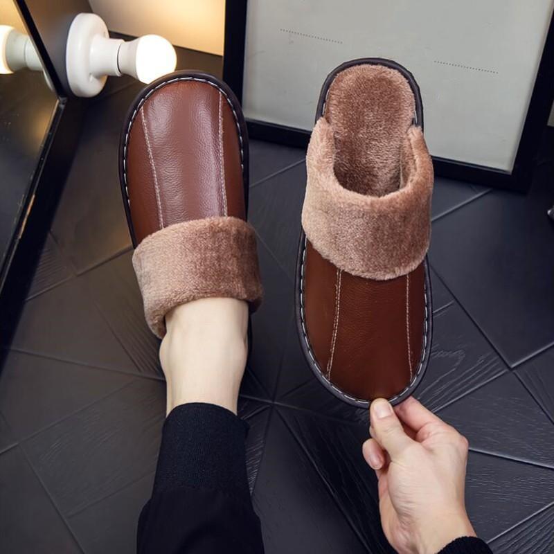Женские и мужские осенне-зимние дышащие теплые домашние тапочки новые толстые парные кожаные тапочки повышенного дышащие водонепроницаемые теплые