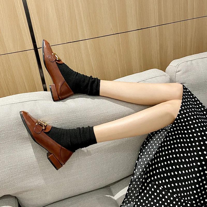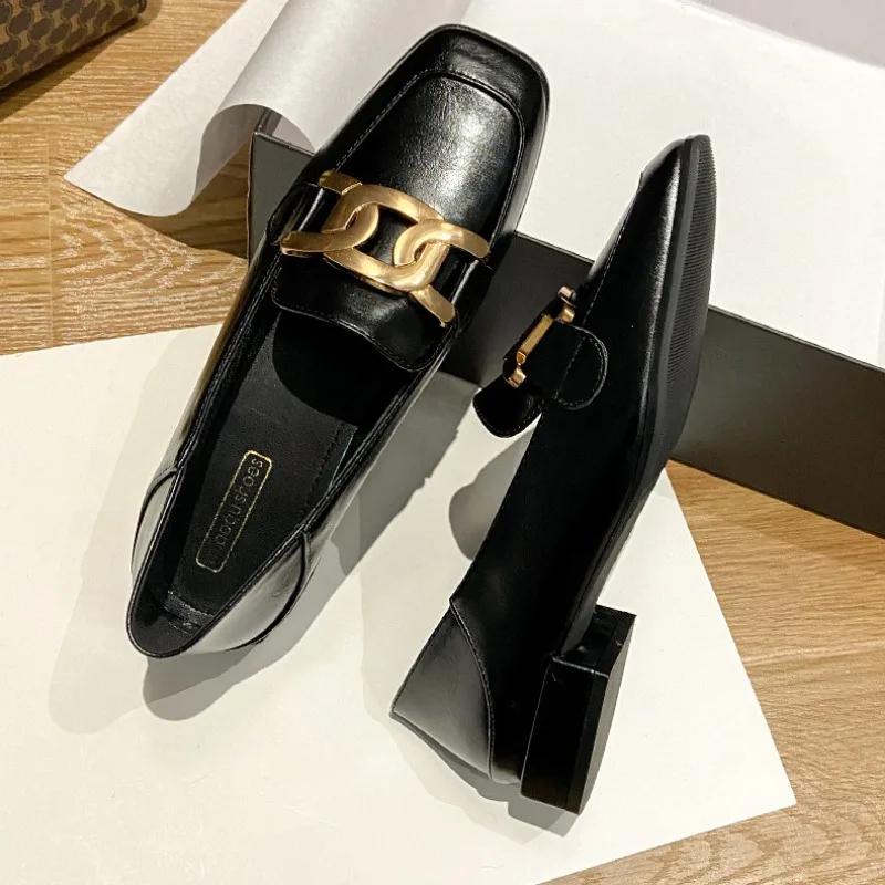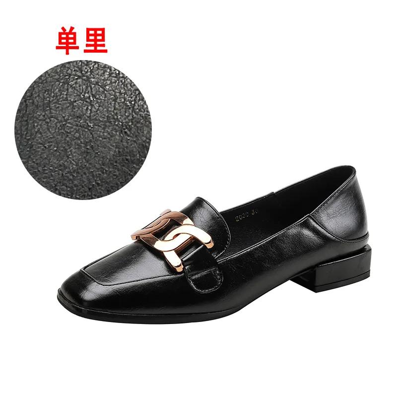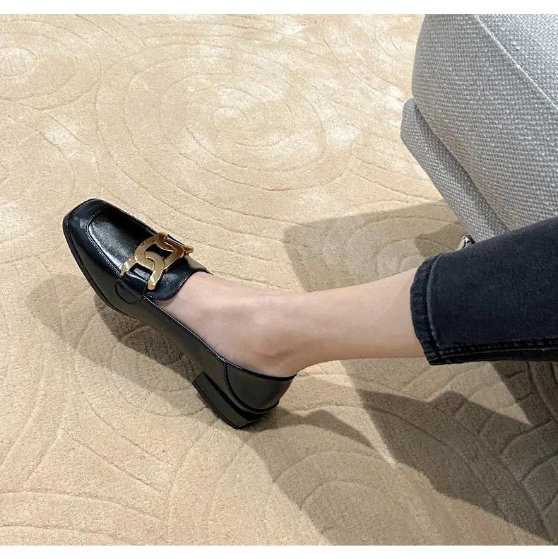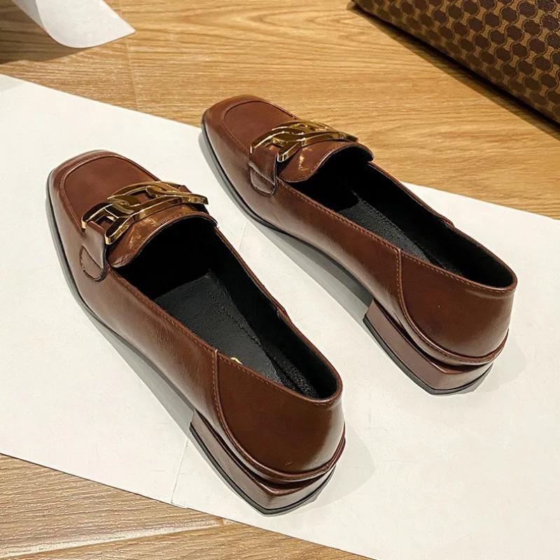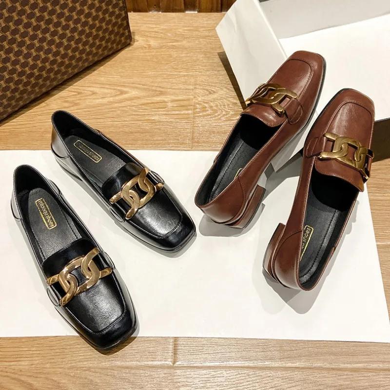 Лоферы женские кожаные туфли 2024 года новые плоские одинарные туфли женские туфли большие размеры туфли-лодочки квадратный носок квадратный каблук низкий (1 см-3 см)
