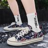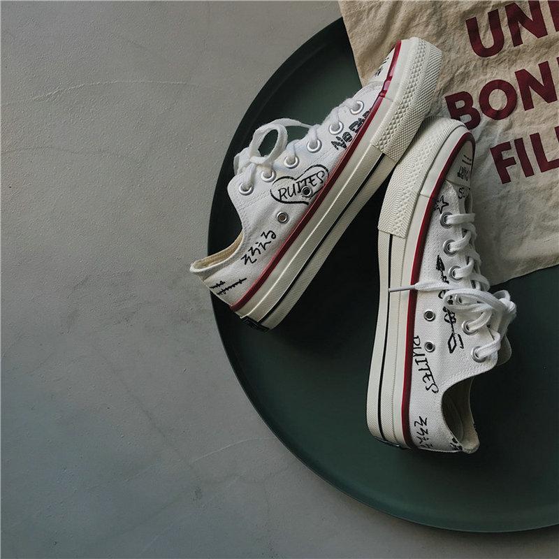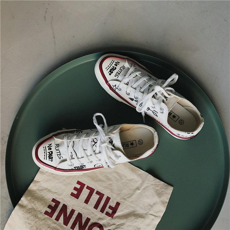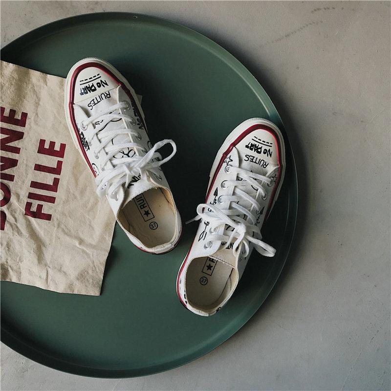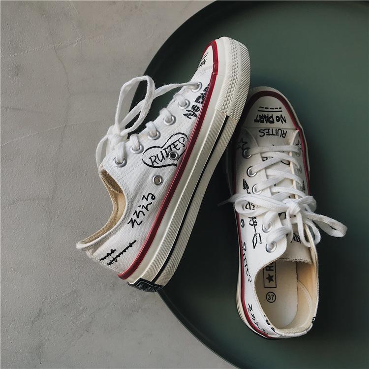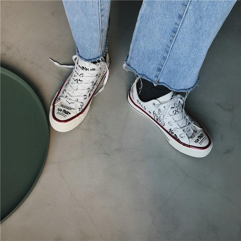 2019 Женские парусиновые кроссовки Белые граффити Туфли Женская мода Лето Лидеры продаж Повседневные кроссовки Женские вулканизированные туфли 869