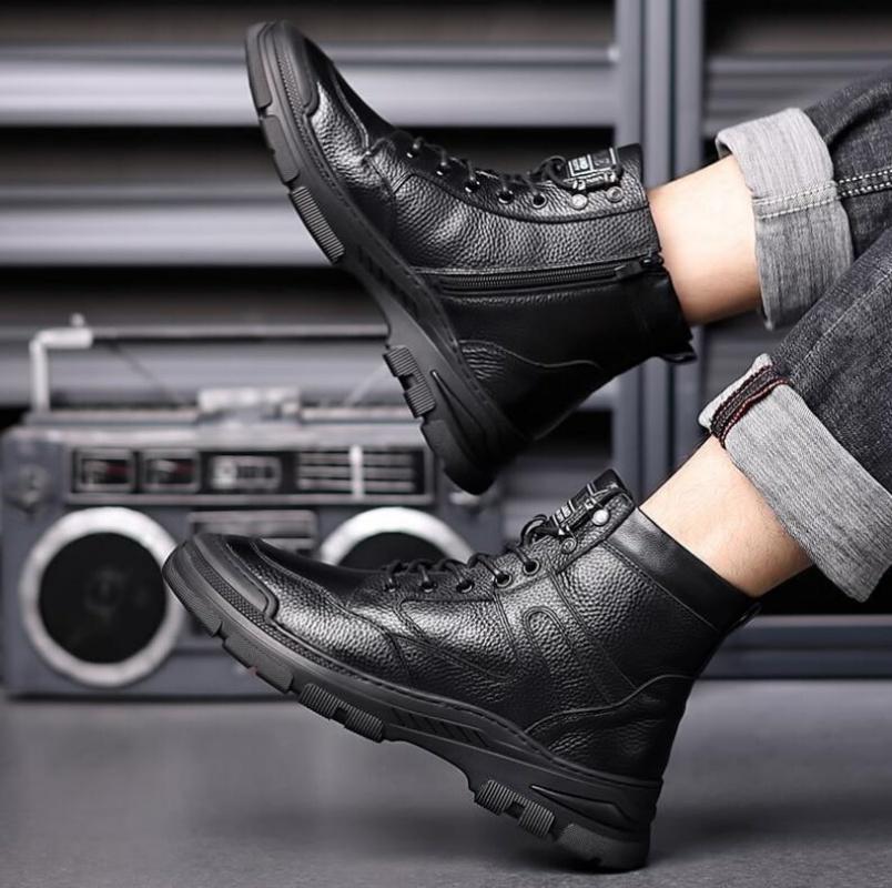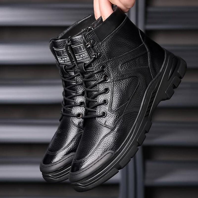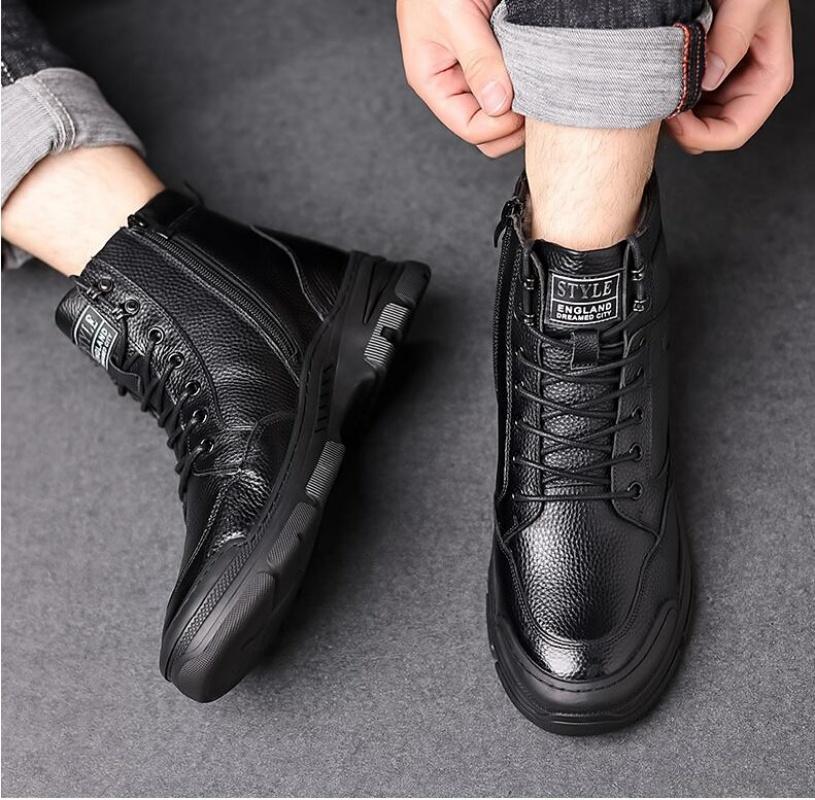Мужские шерстяные теплые кожаные ботинки на осень и зиму, утепленные, повседневные, с высоким берцем, для занятий спортом на открытом воздухе, зимние ботинки