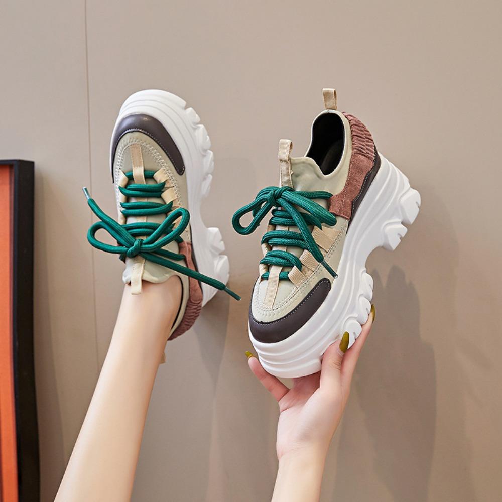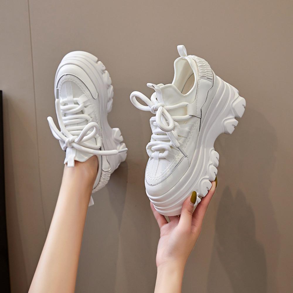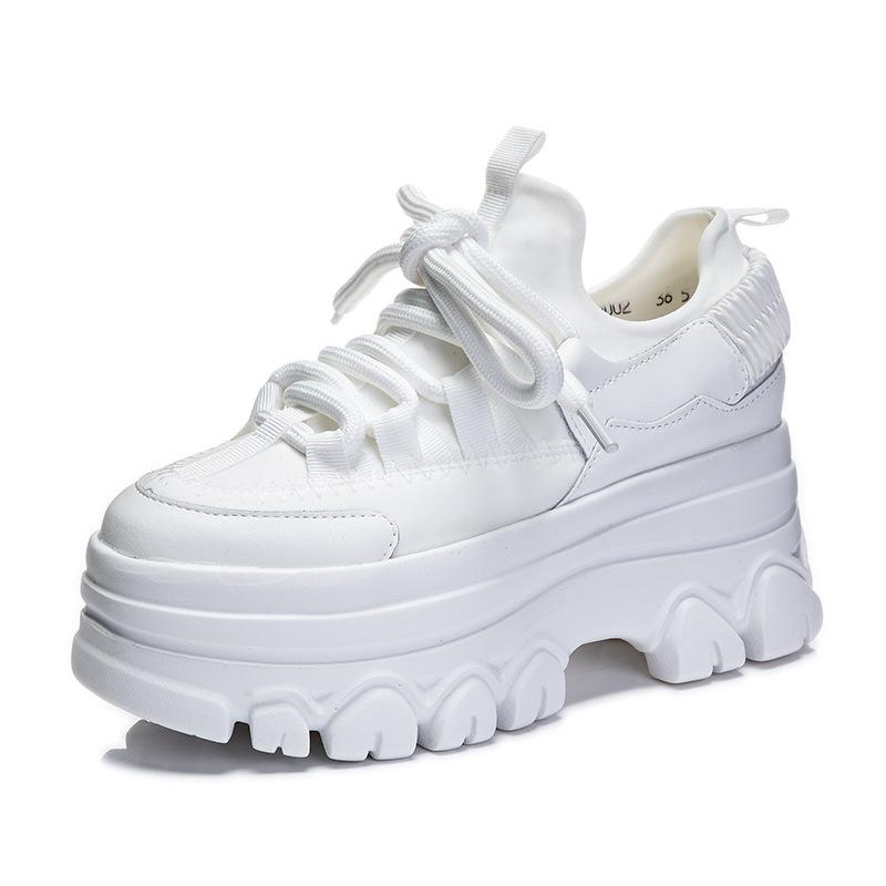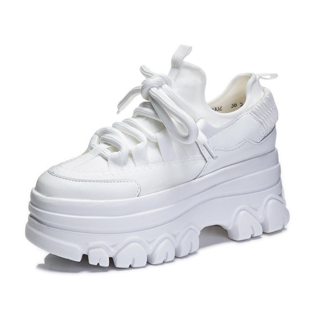 Белые кроссовки женские толстые подошвы внутри подъемные туфли папочки женские кожаные повседневные туфли женские туфли кроссовки на платформе