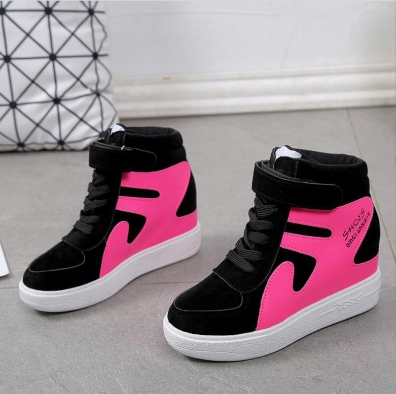 Красные кроссовки женские 2024 Высокие кроссовки на платформе женские Повседневные туфли на танкетке Женская обувь Черная обувь на платформе из вулканизированной стали для женщин
