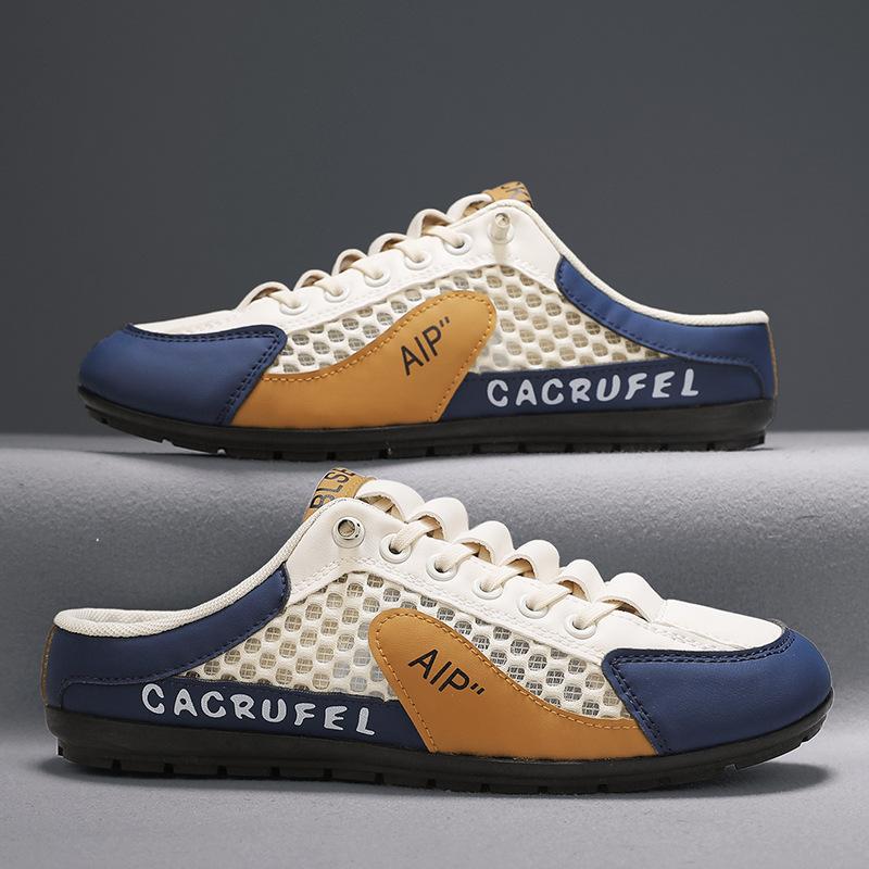 Мужские полутапочки, модная повседневная обувь для мужчин, прогулочные туфли на плоской подошве, мягкие поддерживающие тапочки, сетчатые дышащие мокасины без застежек