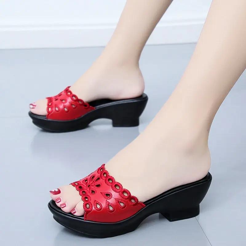 Женские открытые круглые носки Pantuflas Design Sapatos Feminino однотонные модные удобные тапочки на танкетке сандалии для женщин лето