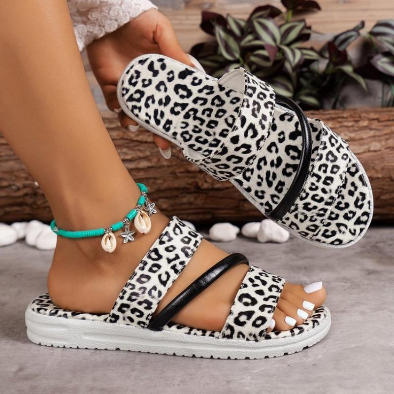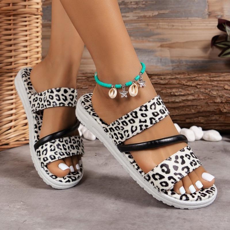 2024 Лето Низкий Каблук Женщин Леопардовый Принт Мягкие Пляжные Тапочки Платформа Нескользящая Плоская Повседневная Обувь Модные Универсальные Zapatos Mujer