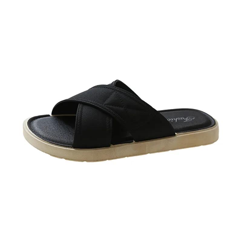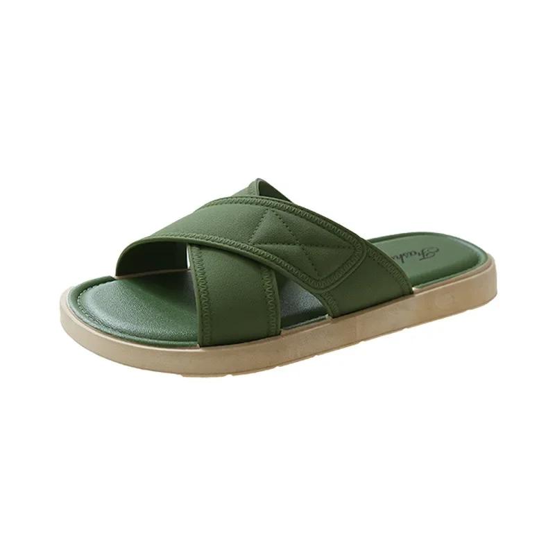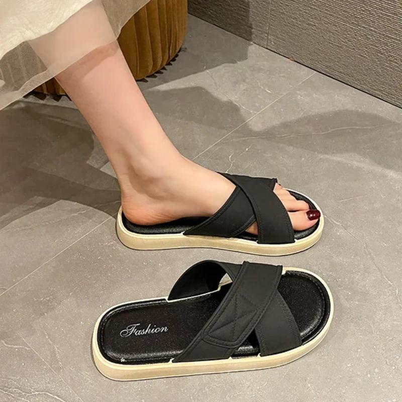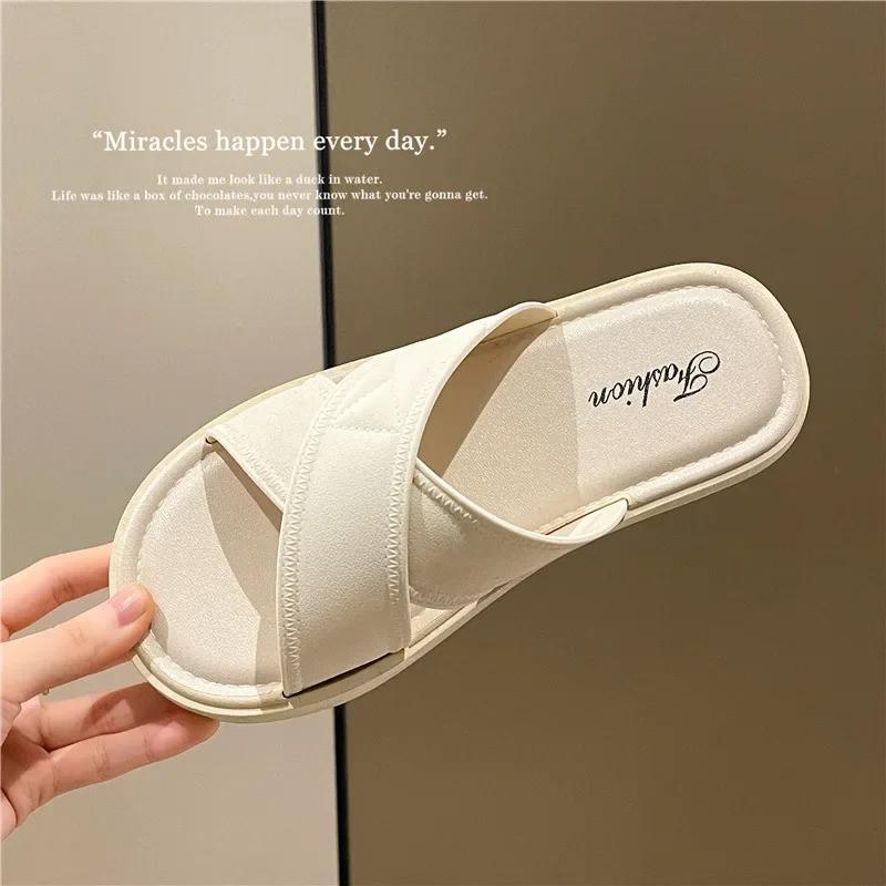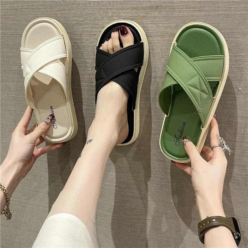 Женские летние уличные тапочки, новинка 2024 года, модные женские повседневные сандалии высокого качества с мягкой крестовиной, тапочки на плоской подошве с толстой подошвой