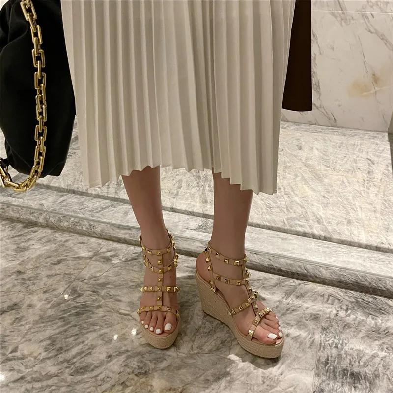 Сандалии женские с открытым носком, пряжкой на щиколотке, сандалии на танкетке и платформе, высокие каблуки, римская ротанговая обувь из травы, плетеная