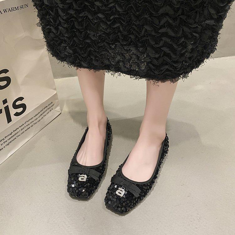 Роскошные танцевальные туфли на плоской подошве с серебряным бантом, весна-осень 2024 года, новые высококачественные женские повседневные туфли на плоской подошве с круглым носком