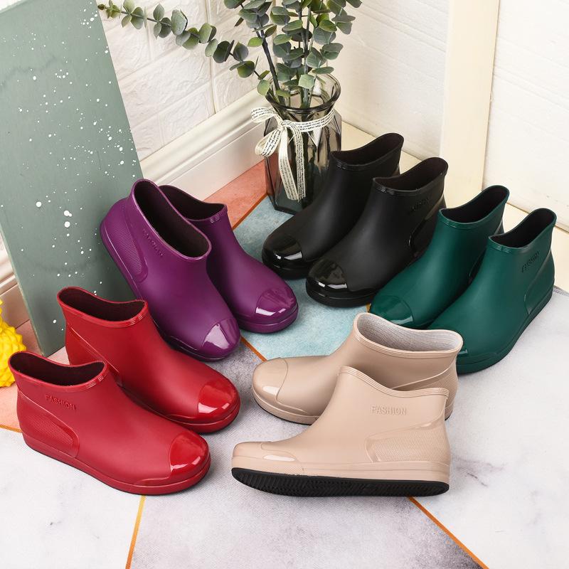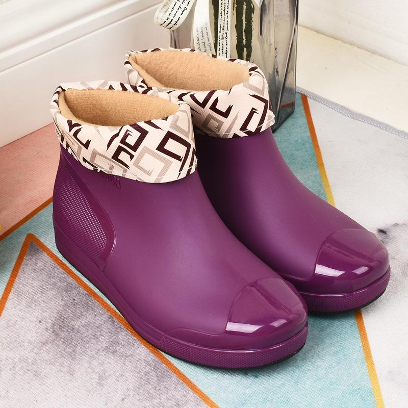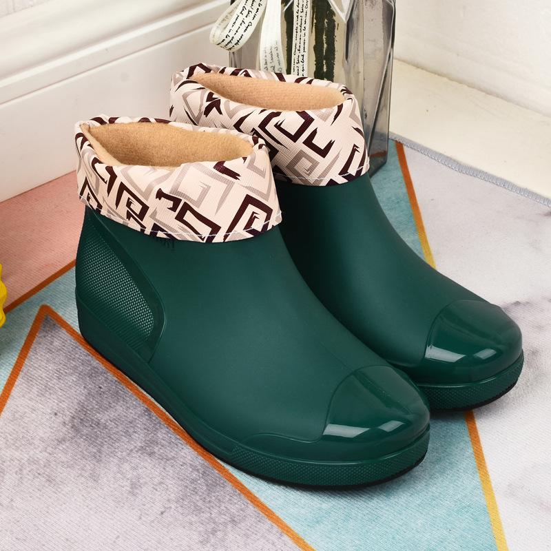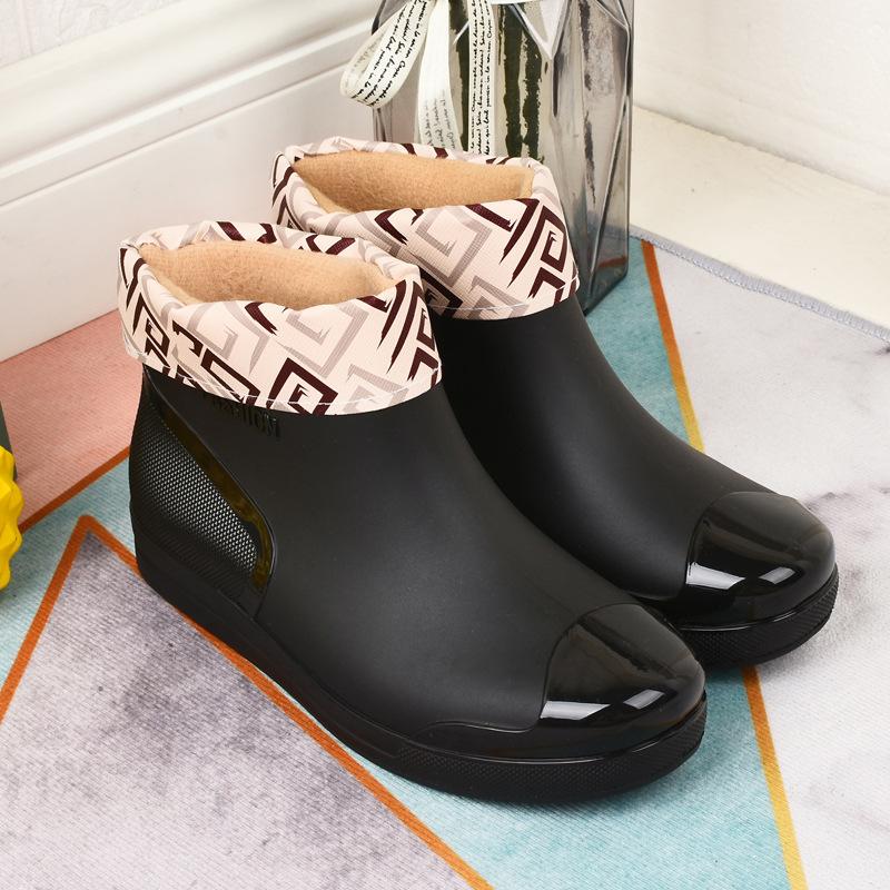 2024 Модные женские резиновые сапоги Короткие нескользящие утолщенные водные сапоги Теплые бахилы Удобные износостойкие сапоги