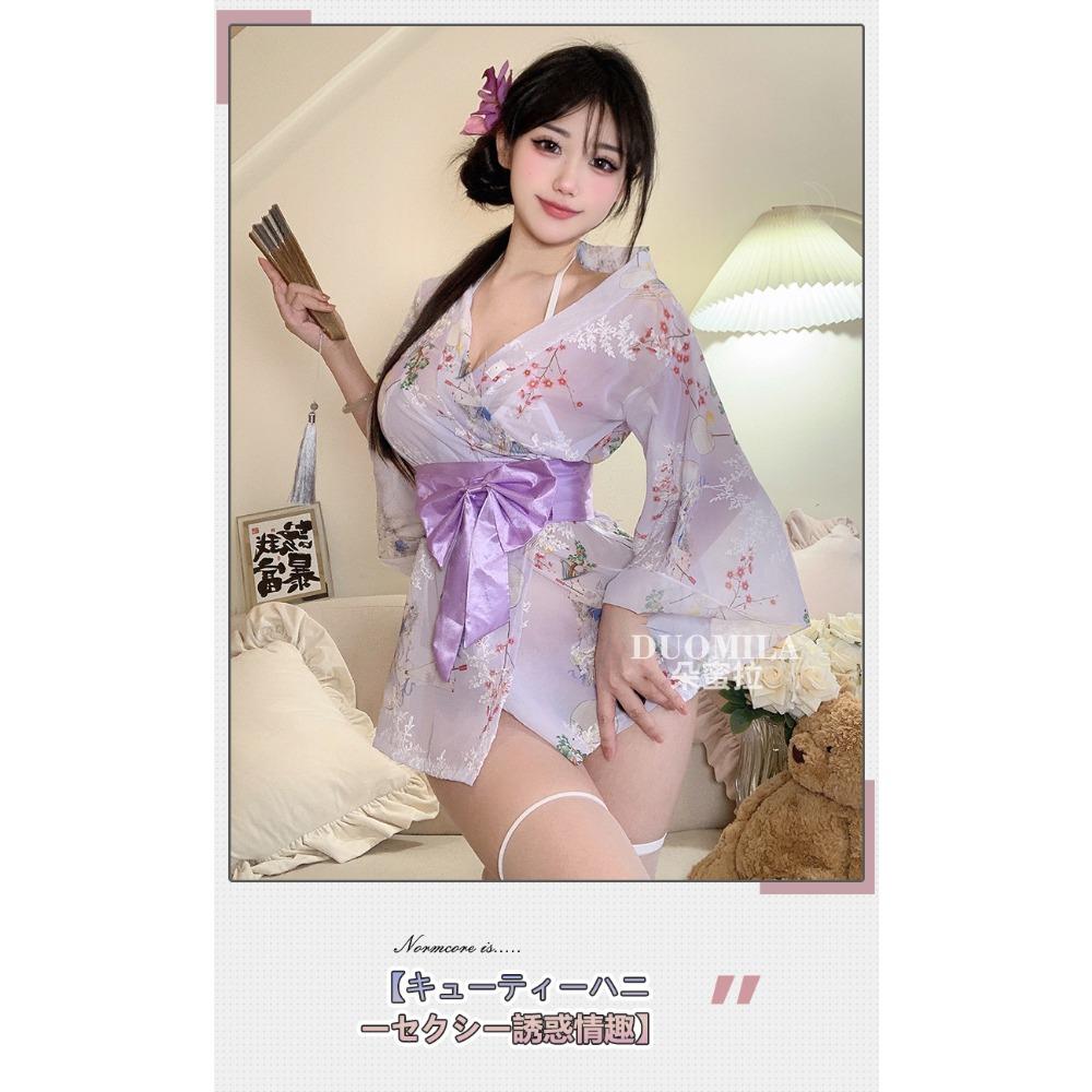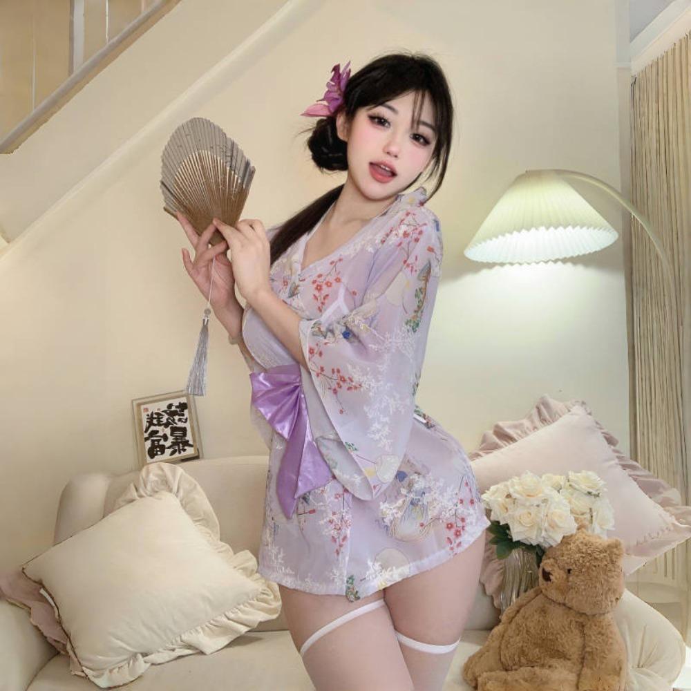 Domila Сексуальное нижнее белье Японский сексуальный кардиган Трехточечное шифоновое вышитое кимоно Горячая униформа Женский костюм