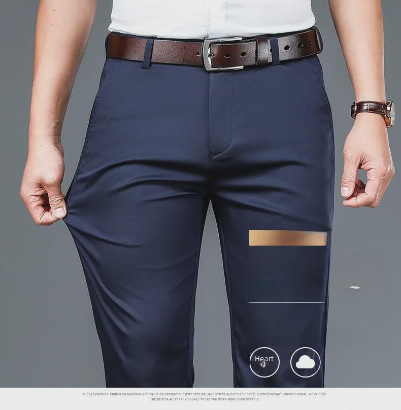 Ощутите непревзойденный комфорт и стиль с этими модными мужскими повседневными брюками.. Эти брюки с высокой талией, изготовленные из роскошного искусственного шелка, имеют прямой и свободный крой, который обеспечивает как легкость движений, так и современный эстетический вид.. Мягкая и дышащая ткань дополнена смесью химических волокон, обеспечивающих эластичность и долговечность.. Эти брюки идеально подходят для создания непринужденного, но изысканного образа и станут неотъемлемой частью любого гардероба.